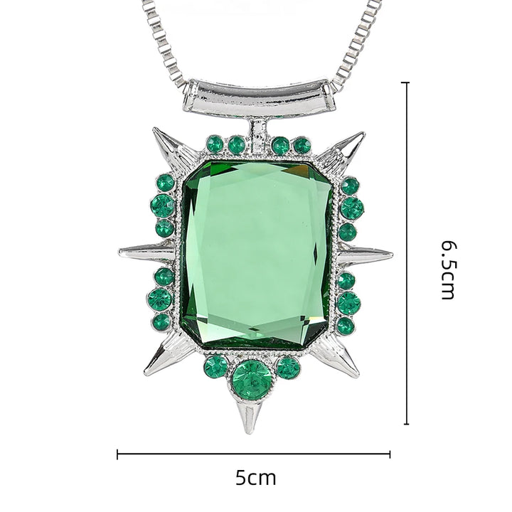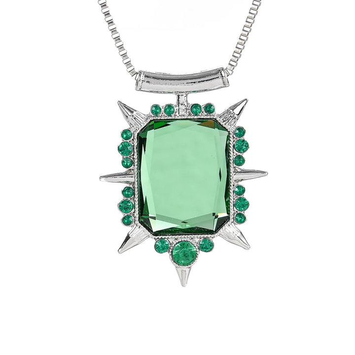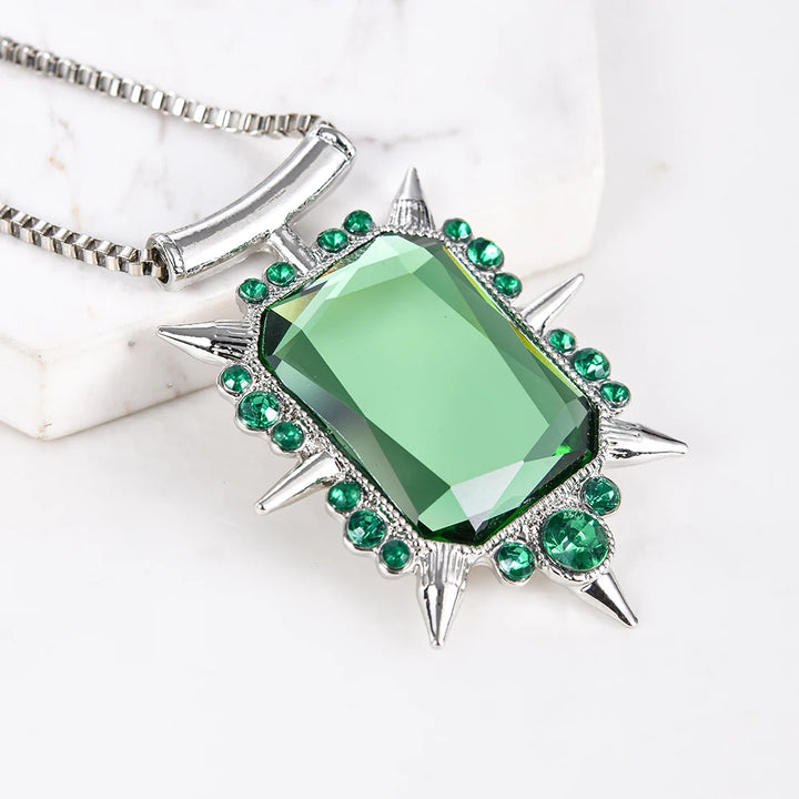 Designed with a large emerald-green gemstone and surrounded by silver spikes + tiny green crystals, this necklace looks like it came straight out of a magical grimoire (or Elphie’s jewelry box) ( ˘͈ ᵕ ˘͈♡)